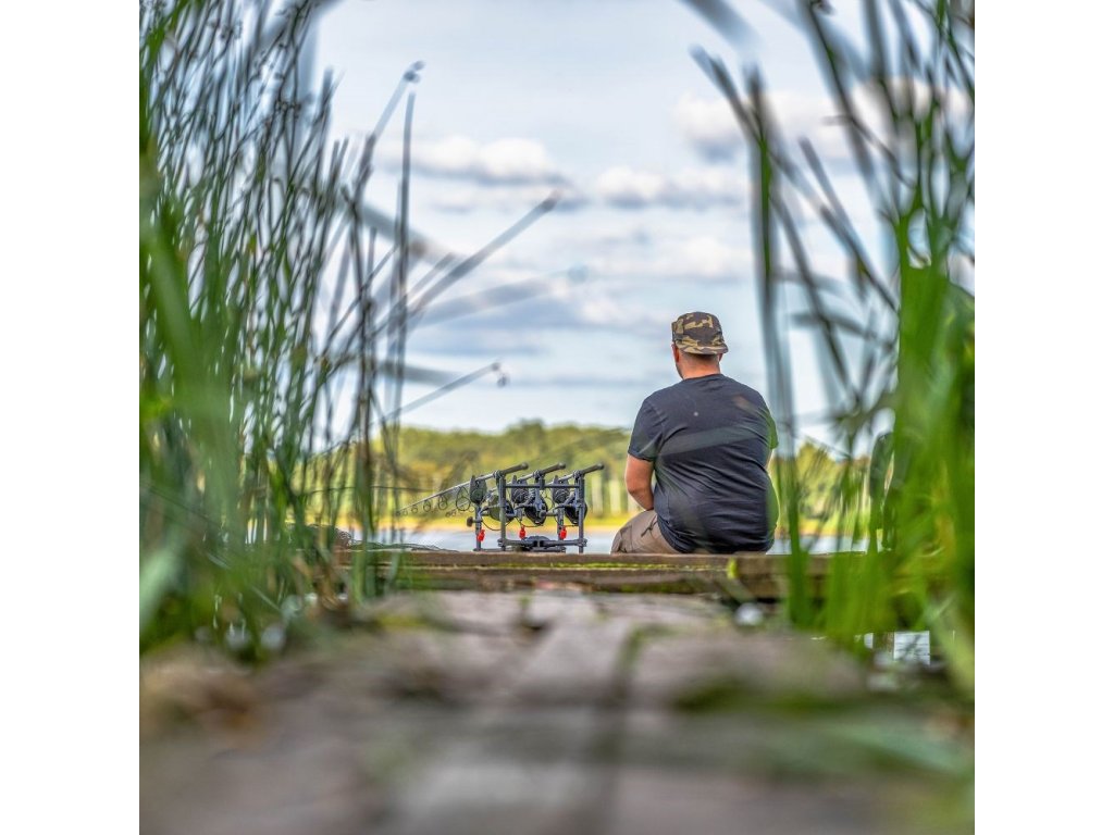 Kompaktní, lehký, nízkoprofilový stojan na pruty, s hrazdami pro 2 a 3 pruty.