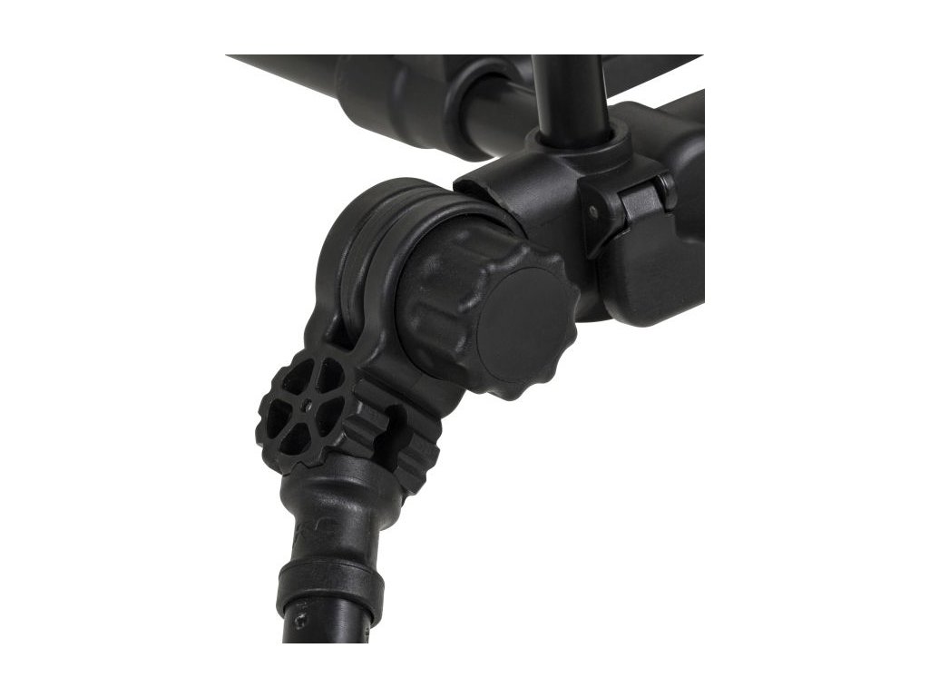 Lehká, robustní hliníková konstrukce, matně černý povrch, robustní klouby a klipy, nastavitelný závit pro lehké upevnění signalizátorů.
