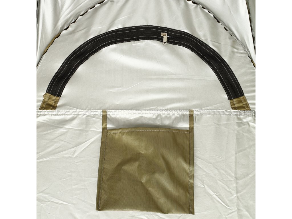 Velmi rychle a jednoduše lze postavit. Je dodáván včetně přepravního obalu. Specifikace: - neprůhledný materiál SilverCoat - použitá tkanina: 200T Polyester Taffeta - UV ochrana: UV50+ - tkanina nepropustná větru a nemění tvar - nepromokavost: 2000mm vodního sloupce (běžné použití, mírný déšť, přeháňky) - vnitřní konstrukce: ocelový drát - ventilační otvory na zip ve vrchní části - 1x vnitřní kapsa - 4x kotvící kolík - 4x stabilizační šnůrka - rozměry: 120 x 120 x 190 cm - hmotnost: 2.10 kg - barva: zelená Odkaz na video: http://www.youtube.com/watch?v=lPIXa303ulEDoplňkové parametry