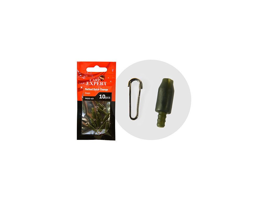 Carp Expert Method Quick Change Snap je speciální rychlovyměnitelná karabinka navržená speciálně pro techniku method feeder. Umožňuje velmi rychlou výměnu návazce vlasce, díky čemuž se můžete co nejrychleji přizpůsobit aktivitě ryb.
