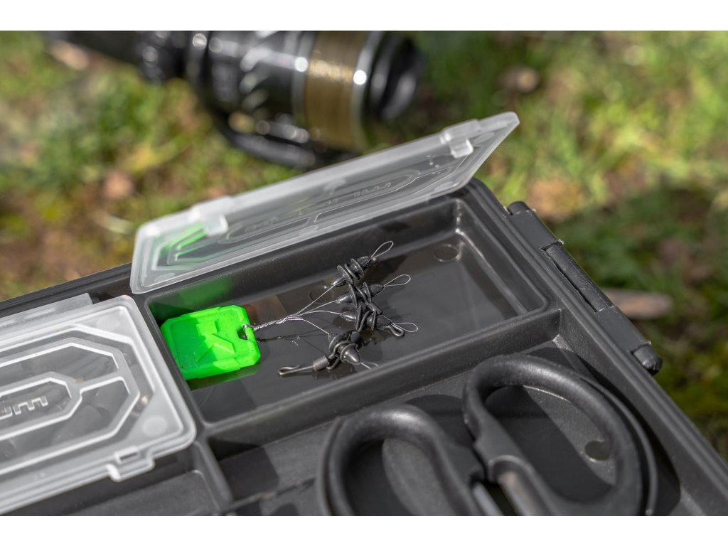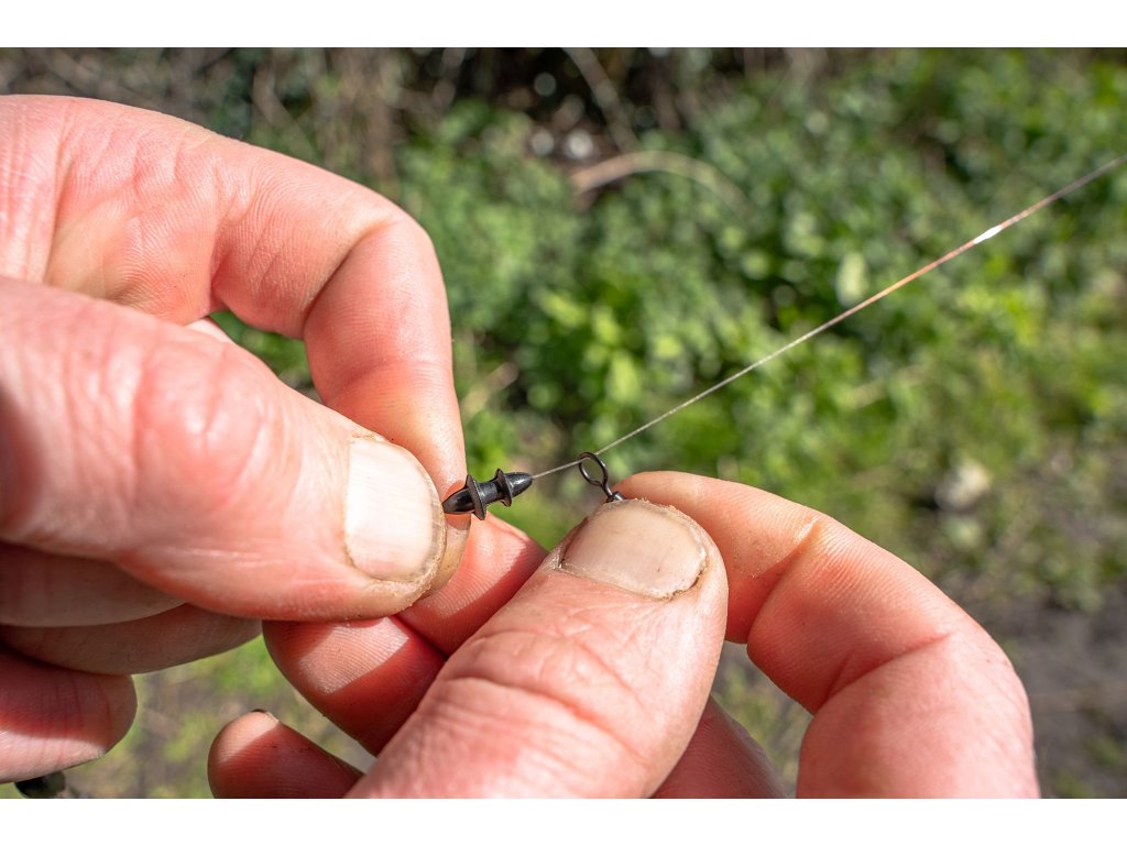 Včetně obratlíku s matným povrchem Big Eye Swivel s rychlovýměnným očkem pro použití s vámi preferovaným převlekem proti zamotání. Samotný Heli Bead je vyroben ze super přilnavého materiálu, jako například zarážka na splávek, takže ho lze posunout kdekoli na vlasci bez proklouzávání. Dodáváno již připravené na drátcích a připraveno použití.