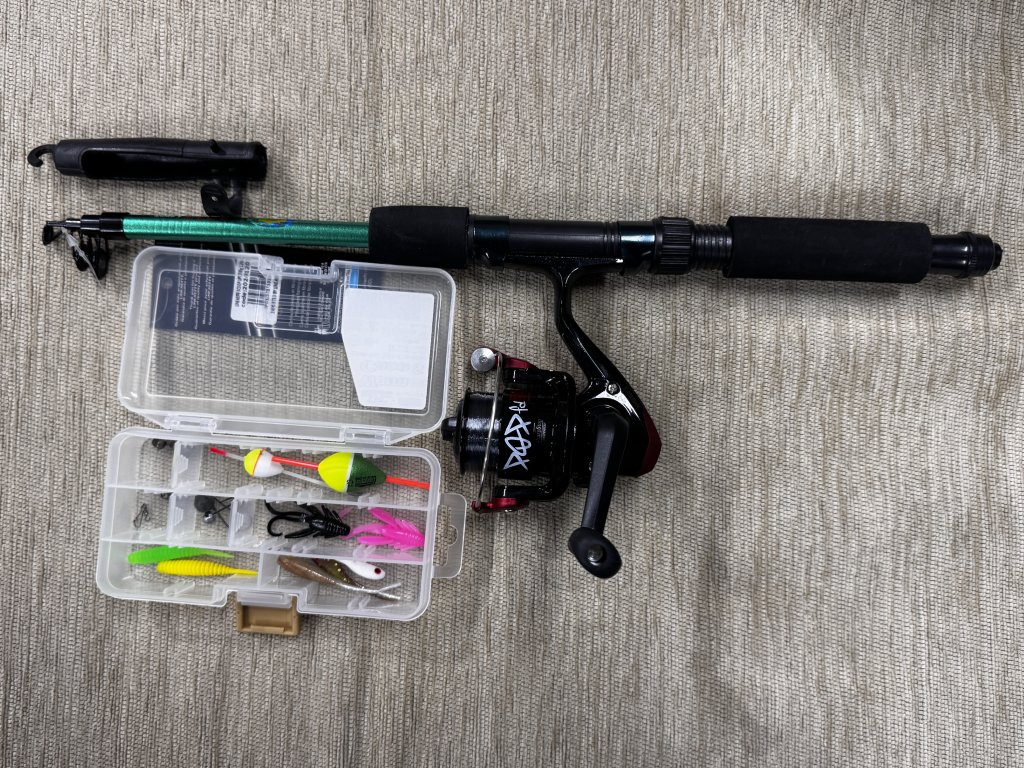 Sestava pro rybolov obsahuje - teleskopický proutek stření akce v délce 120 cm váze 56g přepravní délka 37 cm. Naviják na dírky VIGOR POP s vlascem 0,20-120 m, převodem 5,2:1.