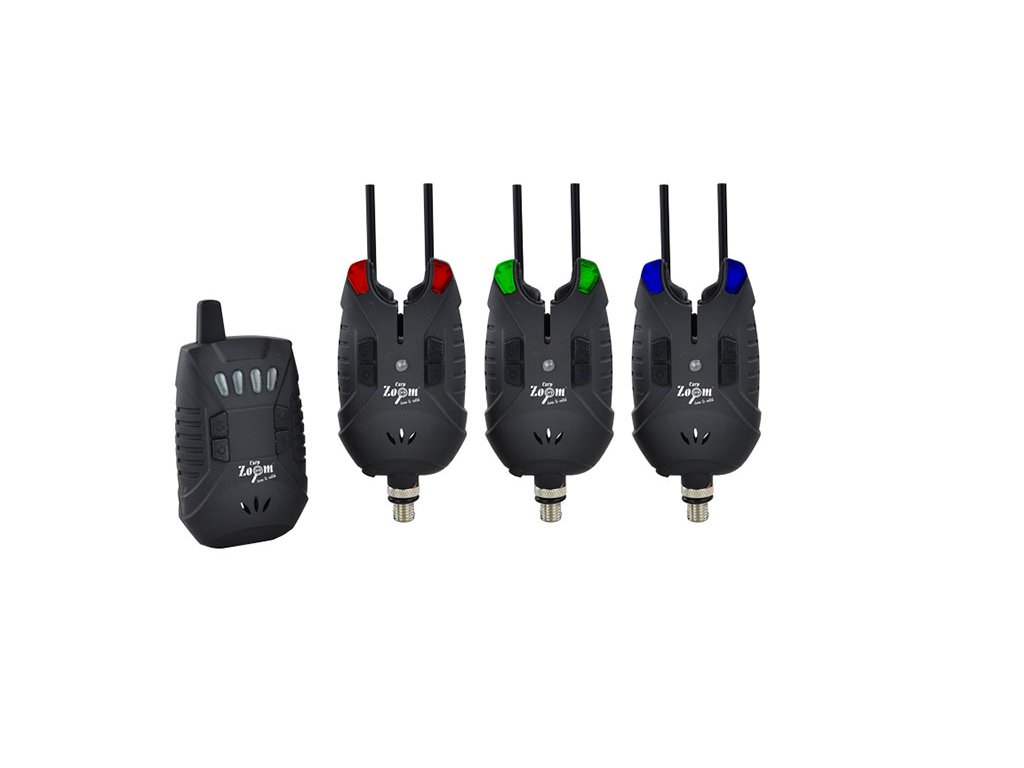 Sada signalizátorů na tři pruty s možností rozšíření na čtyři. Signalizátory jsou z odolného materiálu a dobře odolávají nárazům a mechanickému poškození. - Výstup pro připojení swingeru. - Osvětlení pomocí LED DIODY. - Noční poziční osvětlení se zapíná automaticky. - Součástí sada SNAG BARS (jistící vidlice prutu). - Nastavení hlasitosti, tónu i citlivosti. - Příposlech disponuje tichým režimem (vibrace). - Dosah příposlechu 200 m. - Do příposlechu jsou potřeba 3 ks x AAA baterie a do signalizátoru 1 x 9V 6LR baterie, (baterie nejsou součástí balení). Výrobce: Carp ZoomDoplňkové parametry