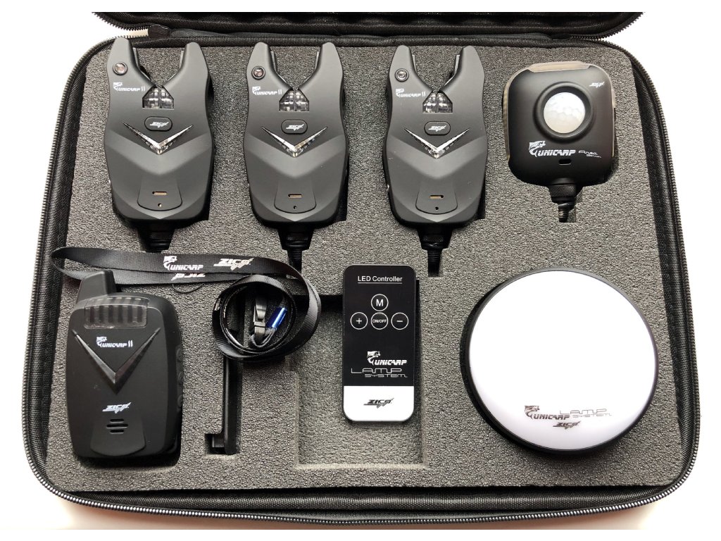 SADA ZICO UNICARP II PRO (3ind.+příj.,čidlo,lampa,kufr)~Kompletní sada 3x indikátor + přijímač, lampa, čidlo v jednom kufírku~UNICARP II navazuje na úspěšnou řadu indikátorů UNICARP. Do jeho originálně řešeného, kompaktního a voděodolného těla byla vložena elektronika té nejlepší kvality. Dvojitá kontrola výroby nám dovoluje poskytnout tříletou záruku, což řadí tento výrobek do vyšší kategorie na trhu. Unicarp II disponuje nejen originálním vzhledem, ale řadou UNI-kátních funkcí reflektujících potřeby předních kaprařů, ale i obecné požadavky běžných rybářů např. funkce "Delay" 30s pro nastavení indikátorů; "Incognito" -indikace záběru pouze na přijímači; "Lighthouse" pro lokalizaci lovného místa při zavážení, "Alarm" proti krádeži prutů; "Drop back" funkce- zpětný záběr (padák) indikovaný "V" LED panelu a zvukem. Celé ovládání probíhá intuitivně tak jako u předchozího modelu. Pro přehlednost byl tento model vybaven pro zapnutí a vypnutí indikátoru a jeho modifikaci nočního osvětlení, rolničky a paměťové diody dalším tlačítkem - ZICO. Tímto se značně zjednodušila volba jednotlivých funkcí i při ztrátě návodu. Napájení je řešeno 9V baterií, která je volně dostupné ve většině obchodech, nicméně životnost baterie určuje používání indikátoru. (vzdálenost mezi indikátorem a přijímačem, používání přední zavážecí diody apod.) Na přijímač lze snadno napárovat až 6 indikátorů s unikátním kódováním. Jednotlivé indikátory Unicarp II lze párovat i na předchozí přijímač setů UNICARP (ID UNI 2 UNI 3) a to stejným způsobem. Dostupnost pro jednotlivé indikátory řady Unicarp II je docílena prodloužením antény v jeho těle a dosahuje více než 200m. Vice o jednotlivých funkcích se dočtete v návodu viz."přílohy ke zboží" Výrobek se dodává v kufírkových sadách 2+1 (červená + modrá; ID UNIC 2) nebo 3+1 (červená, modrá, zelená; ID UNIC 3) jednotlivě lze k přijímači dokoupit jednotlivé barvy indikátorů Unicarp II (k dispozici červená, modrá, zelená a žlutá; ID UNIC R-G-B-Y )~~Technické parametry Indikátoru:~- Digitální technologie řízená mikroprocesorem~- Regulace hlasitosti 0+6 úrovní~- Regulace tónu 7 úrovní tónu~- Regulace citlivosti 7 úrovní~- Vysoká viditelnost LED diod~- LED diody s 20 vteřinovou pamětí~- Pohotovostní režim LED diod, noční osvětlení~- Integrovaný výstup na swinger, snag s 20s pamětí~- Funkce "Delay" 30s pro nastavení indikátorůá~- Funkce "Incognito" -indikace záběru pouze na přijímači ~- Funkce "Lighthouse" pro lokalizaci lovného místa při zavážení~- Funkce "Alarm" proti krádeži prutů~- "Drop back" funkce- zpětný záběr (padák) indikovaný "V" LED panelu a zvukem~- Černý mosazný šroub s aretací pootočením matice~- Voděodolné a pogumované tělo indikátoru~- Provozní frekvence pro bezdrátového vysílání: 433MHz~- Provozní napětí: 9V (baterie 9V je součástí výrobku)~-3 roky záruka~cena je za SADU 2 indikátory + pijimač UNICARP + kufírek ( baterie,popruh na krk, držák pijimače na opasek)~nezávislá recenze: https://www.mrk.cz/recenze/elektronika/sada_signalizatoru_zico_unicarp_ii/~~odkaz na bezpečnostní čidlo~https://www.zico.cz/pohybove-cidlo-zico-unicarp-eanUNIC+C-skup478.php~~odkaz na lampu do bivaku~https://www.zico.cz/lampa-zico-unicarp-do-bivaku-prijimac-eanUNIC+L-skup478.phpDoplňkové parametry