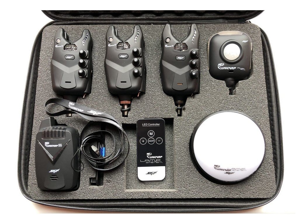 SADA ZICO UNICARP III PRO (3ind.+příj.,čidlo,lampa,kufr)~Kompletní sada 3x indikátor + přijímač, lampa, čidlo v jednom kufírku~~Nejnovější model UNICARP III s možností volby barvy navazuje na úspěšnou řadu indikátorů UNICARP. Do jeho originálně řešeného, kompaktního a voděodolného těla byla vložena elektronika té nejlepší kvality. Dvojitá kontrola výroby nám dovoluje poskytnout tříletou záruku, což řadí tento výrobek do vyšší kategorie na trhu. Unicarp III disponuje nejen originálním vzhledem, ale řadou UNI-kátních funkcí reflektujících potřeby předních kaprařů, ale reguje i na obecné požadavky běžných rybářů např. funkce "Incognito" -indikace záběru pouze na přijímači; "Lighthouse" pro lokalizaci lovného místa při zavážení, "Alarm" proti krádeži prutů; "Drop back" funkce- zpětný záběr (padák) indikovaný na "S" LED panelu a zvukem. Celé ovládání probíhá intuitivně tak jako u předchozího modelu. Pro přehlednost byl tento model vybaven pro zapnutí a vypnutí indikátoru páčkou. Zapnutím do polohy ON na "S" panelu navíc zobrazuje podíl dílků aktuálního nabití 9V baterie. Regulace hlasitosti "V", tónu "T" a citlivosti "S" je volena klasickými potenciometry se zobrazením hodnoty na "S" panelu. Modifikace nočního osvětlení, rolničky, paměťové diody a majáku je ovládáno tlačítkem - ZICO. Napájení je řešeno 9V baterií, která je volně dostupná ve většině obchodech, nicméně životnost baterie určuje používání indikátoru. (vzdálenost mezi indikátorem a přijímačem, používání přední zavážecí diody apod.) Na přijímač lze snadno napárovat až 6 indikátorů s unikátním kódováním. Jednotlivé indikátory Unicarp III lze párovat i na předchozí přijímač setů UNICARP (ID UNI 2, UNI 3, UNI 4) a rovněž na přijímač UNICARP II a to stejným jednoduchým způsobem. Dostupnost pro jednotlivé indikátory řady Unicarp III je docílena prodloužením antény v jeho těle a dosahuje více než 200m. Vice o jednotlivých funkcích se dočtete v návodu viz."přílohy ke zboží" Výrobek se také dodává v kufírkových sadách 2+1, 3+1, 4+1 výhodou Unicarpu III je, že nemusíte vybírat barvu do vašeho setu, jelikož na Unicarpu III lze libovolně přepínat barvy- poslední zvolená se uloží do nastavení se svojí pozicí kanálu na přijímači (max 6 barev: žlutá, zelená, modrá, červená, fialová, bílá) ~~Technické parametry Indikátoru:~- Digitální technologie řízená mikroprocesorem~- MC - multicolor~- Regulace hlasitosti 0+4 úrovně~- Regulace tónu 5 úrovní tónu~- Regulace citlivosti 5 úrovní~- Vysoká viditelnost LED diod, s možností volby jasu~- LED diody s 20 vteřinovou pamětí~- Pohotovostní režim LED diod, noční osvětlení~- Integrovaný výstup na swinger, snag s 20s pamětí~- Funkce "Incognito" -indikace záběru pouze na přijímači ~- Funkce "Alarm" proti krádeži prutů~- Funkce "Incognito" a "Alarm" současně~- Funkce "Lighthouse" pro lokalizaci lovného místa při zavážení~- Indikace nabití baterie po zapnutí indikátoru~- "Drop back" funkce- zpětný záběr (padák) indikovaný na "S" LED panelu a zvukem~- Black chrom šroub s aretací pozice silnou gumičkou~- Voděodolné a pogumované tělo indikátoru~- Provozní frekvence pro bezdrátového vysílání: 433MHz, dosah 200m~- Provozní napětí: 9V (zkušební baterie 9V je součástí výrobku)~-3 roky záruka~~Produktový list: https://www.zico.cz/unicarpIII~~odkaz na bezpečnostní čidlo~https://www.zico.cz/pohybove-cidlo-zico-unicarp-eanUNIC+C-skup478.php~~odkaz na lampu do bivaku~https://www.zico.cz/lampa-zico-unicarp-do-bivaku-prijimac-eanUNIC+L-skup478.phpDoplňkové parametry