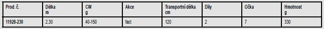 páteří snadno vrhá povrchové nástrahy o hmotnosti 70-120g na velké vzdálenosti. Extra velká očka odolná vůči slané vodě umožňují