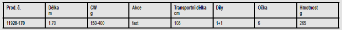 rychlému navíjení těžkých nástrah. Velmi robustní blank přesně poskytuje všechny potřebné vlastnosti pro rychlé uvedení nástrahy do pohybu