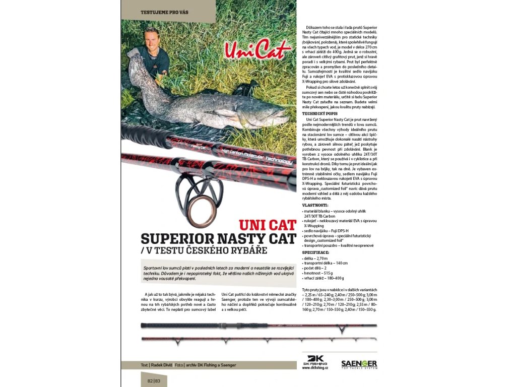 Uni Cat Superior Nasty Cat je prut navržený podle nejmodernějších trendů v lovu sumců. Tento prut kombinuje všechny výhody dokonalého prutu na sumce – citlivou akci špičky, která umožňuje dokonalé nasátí nástrahy, a zároveň silnou páteř, jež poskytuje potřebnou pevnost při zdolávání.