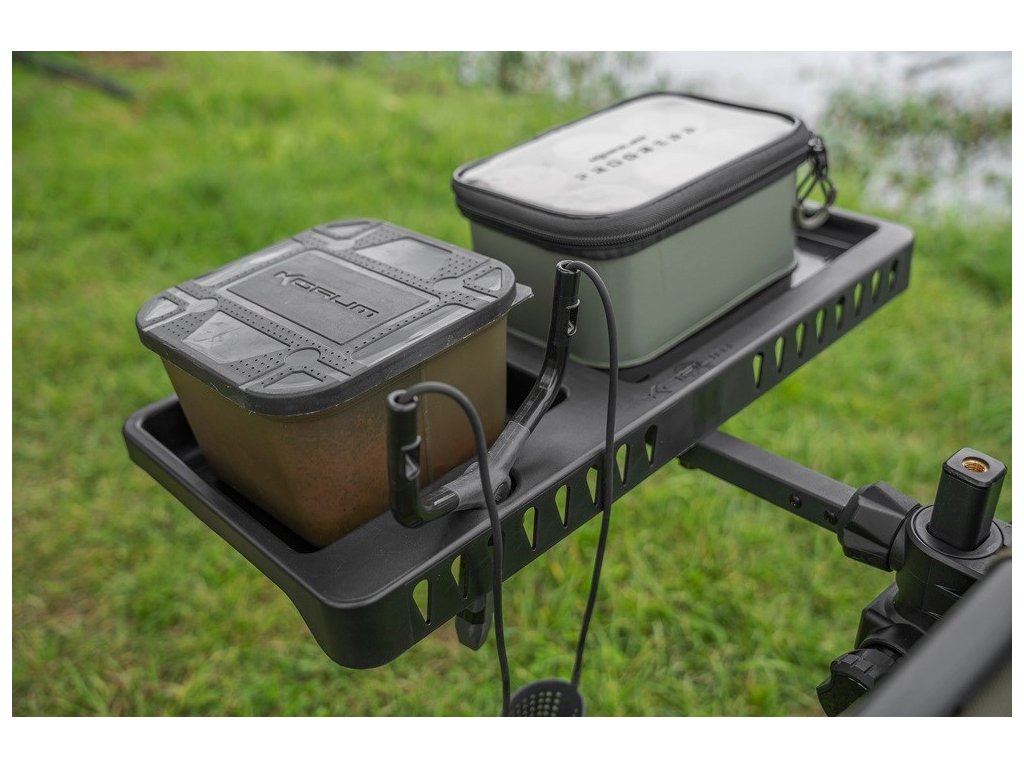 Toto boční plato kompatibilní s krabičkami BLOX a Bait Tub je dokonalým společníkem na břehu, který udržuje vaše nezbytné vybavení po ruce na stabilním nastavitelném platu. Obsahuje otvor pro prak, otvory pro náhradní návazce a upevňovací bod pro podpěry pruty. Rozměry 48 cm x 20 cm.