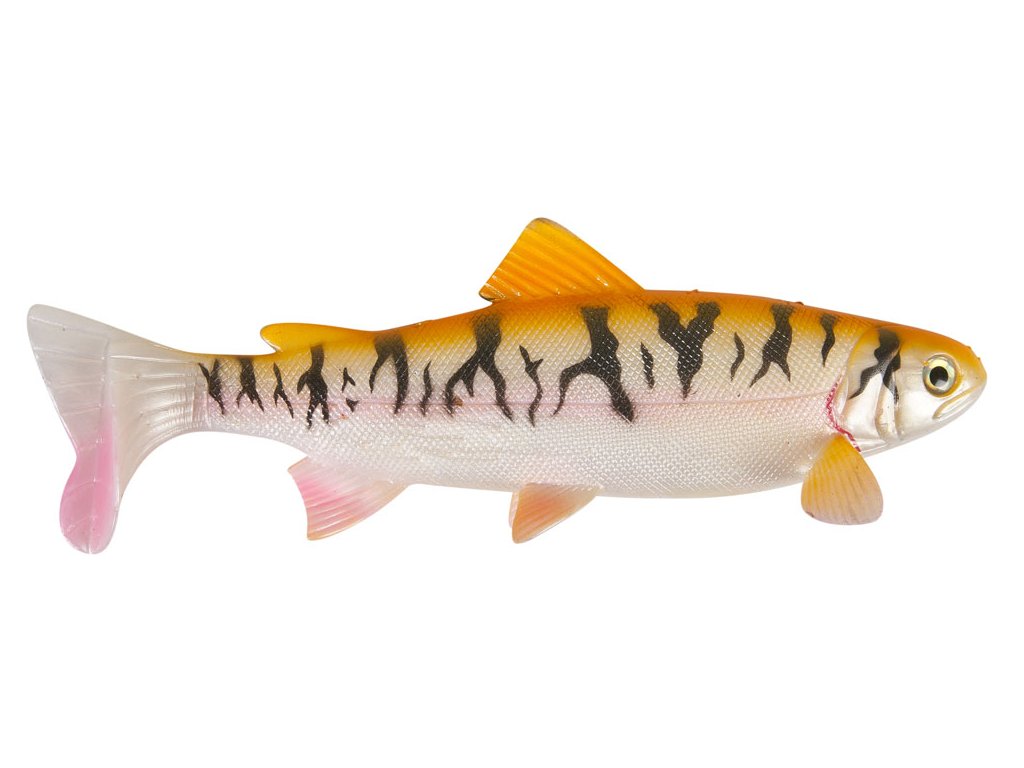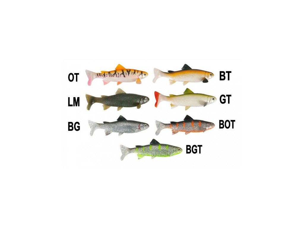 Gumová nástraha imitující pstruha. Je možné ji použít na vodách, kde se přirozeně vyskytují pstruzi. Zde působí tato nástraha na dravé ryby jako magnet.Je k dispozici v 7 barvách a 2 velikostech.- 15 cm / 50 g / 2ks – bal