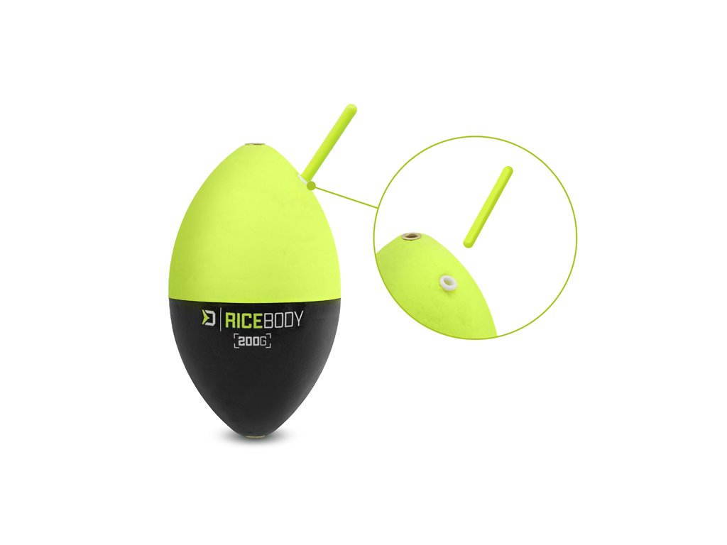 Velký průběžný splávek s tvarem zrnka rýže, který dokáže spolehlivě unést nástrahu se závažím, ale zároveň má malý odpor při záběru. Tento sumcový splávek je vhodný při lovu na trhačku, ale své využití najde i při klasickém lovu například s pijavicemi nebo rousnicemi, kde není nutné udržovat nástrahu přímo nad sumčím hnízdem. Tělo splávku je vybaveno univerzálním otvorem na anténu o průměru 4,5mm. Po setmění lze nahradit anténu chemickým světlem. Kombinace fluouzelené a černé barvy poskytuje dobrou viditelnost plováku i za nepříznivých podmínek jako je například mlha nebo silný déšť. Technické parametry: Gramáž: 100g Gramáž: 200g Gramáž: 300gDoplňkové parametry