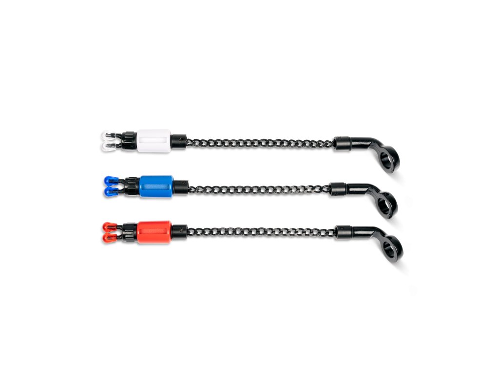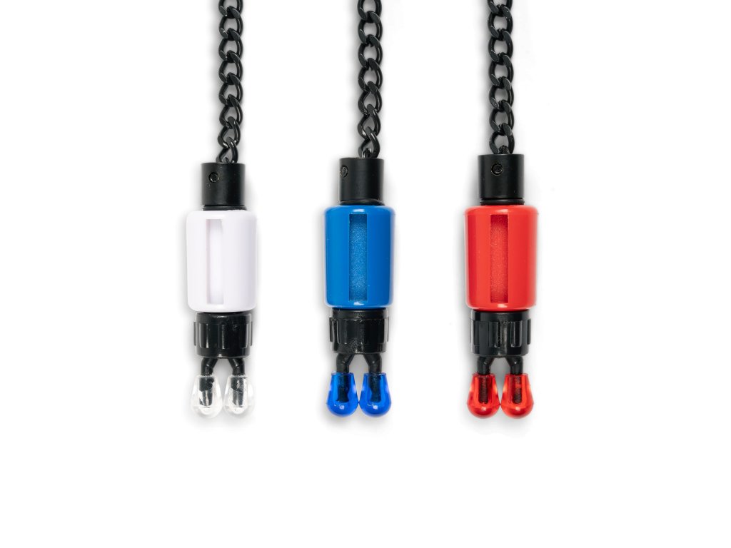 Tři kompaktní indikátory záběru s pogumovanými nastavitelnými klipy na vlasec. Lze je použít se všemi průměry vlasců. Dodávají se s 4“ řetízky v balení červené, bílé a modré barvy. Kompletní s kovovými hokejkami pro dlouhou životnost a odolnost.