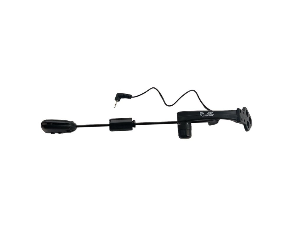 Multibarevný signalizátor záběru (swinger) se spolehlivým magnetickým kuličkovým klipem, který významně šetří vaše vlasce nebo i pletené šňůry všech obvyklých průměrů. ~Posuvným závažím s aretací posuvu snadno upravíte hmotnost (tlak) na vlasec včetně jeho téměř úplného odlehčení. Naopak zvýšení hmotnosti (tlaku) na vlasec slouží dvě polohy 1-2 kloubu s nerezovou pružinou. ~K upevnění na stojan slouží zasouvací adaptér se třemi otvory osy umístění signalizátoru (swingeru). ~Hlava swingeru je osazena kvalitní multibarevnou LED (zelenou, růžovou, modrou, žlutou, červenou, bílou a tyrkysovou) s možností přepnutí jednotlivých barev k dané nebo zvolené barvě signalizátoru. ~LED svítí pouze při záběru ryby (pootočení rolničky) a je napájena baterií z indikátoru. ~Zapojení je pomocí vlastního 2,5mm konektoru, který propojen zároveň s jiným zařízením do rozdvojky Unicarp pod označením UNI ROZ.Doplňkové parametry