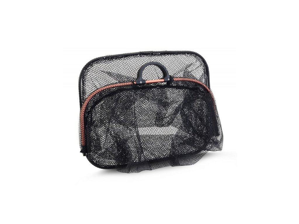 Skládací taška s pogumovanou síťkou. Vrchní část se dá zavřít pomocí kolébkového systému, dvě ucha umožňují pohodlnou přepravu.