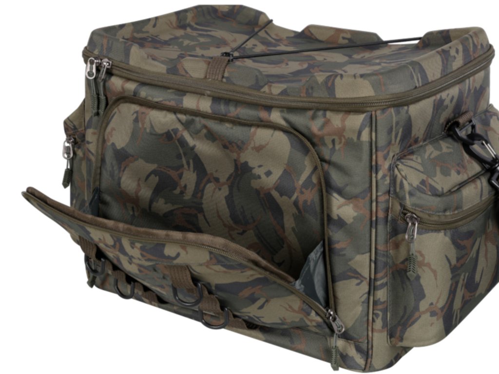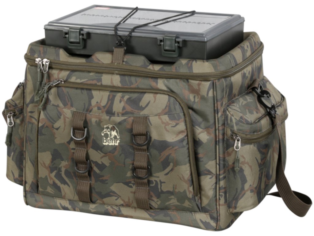 Behr rybářská taška Specimen Bag Large Camou je praktickým pomocníkem pro každého rybáře, který potřebuje více místa na své vybavení a zároveň hledá stabilní pracovní plochu při pobytu u vody. Díky pevné vrchní základně ji lze využít jako improvizovaný stolek a elastické popruhy vám pomohou přichytit plastový box nebo náhradní oblečení.