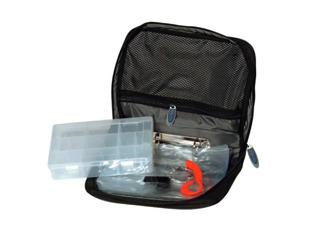Organizér na nástrahy a drobný materiál potřebný k výrobě návazců, souprav a sestav při mořském rybolovu.