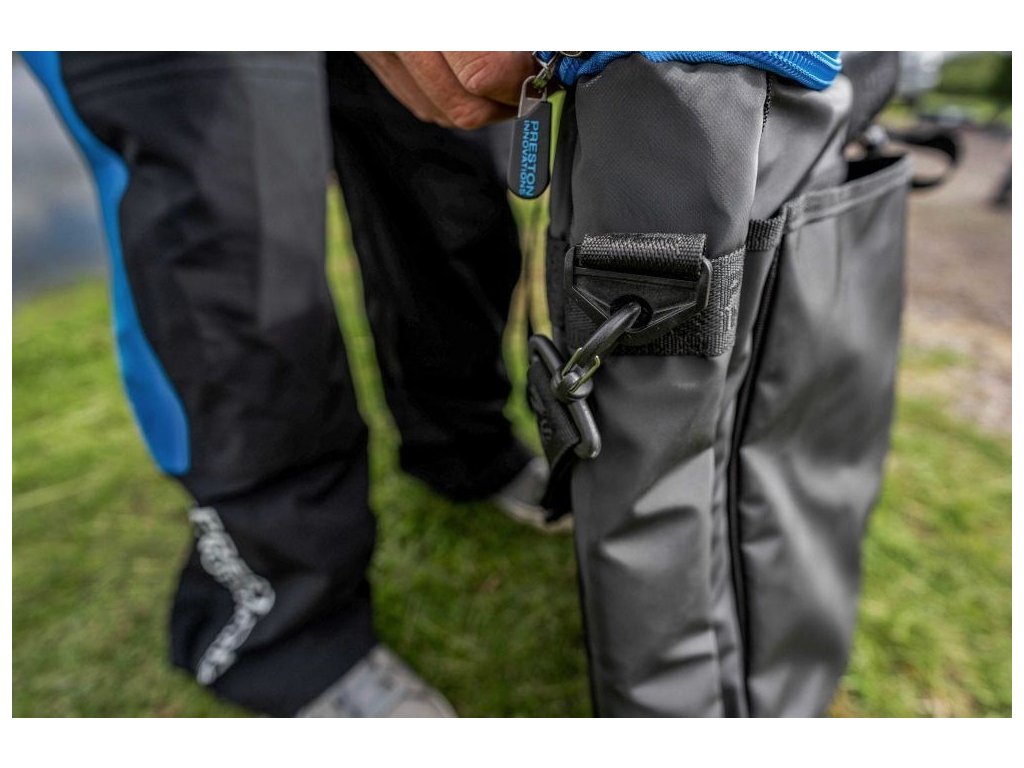 Základna tašky je navíc opatřena pevnou síťovanou základnou, která umožňuje proudění vzduchu a zabraňuje nežádoucím zápachům. Najdete zde i vnější kapsu, která je ideální pro menší příslušenství OffBox.