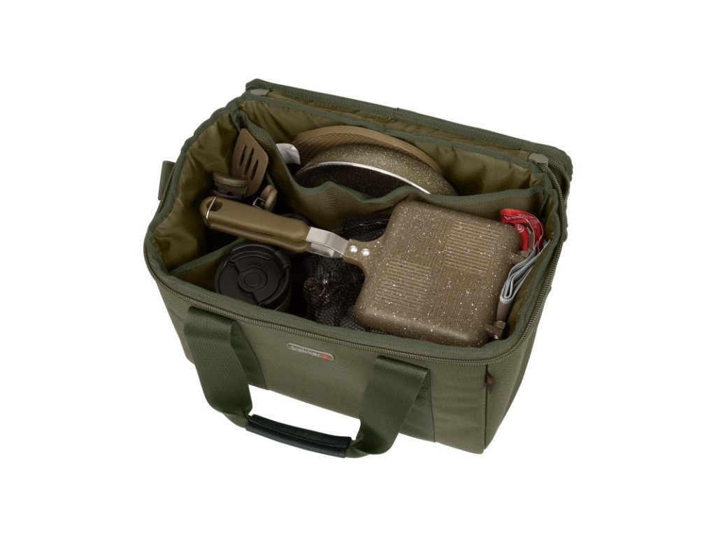 Taška na nádobí Trakker NXG je navržena tak, aby udržovala vaše kuchyňské náčiní organizované a v bezpečí. Má polstrovanou podšívku pro větší ochranu a tři vnitřní kapsy, které pomáhají udržovat vše pěkně oddělené. Víko s dvojitým zipem nabízí přístup z obou stran tašky a robustní popruhy usnadňují přenášení.