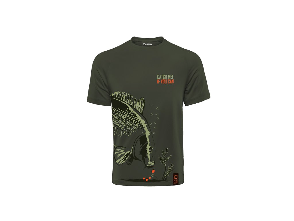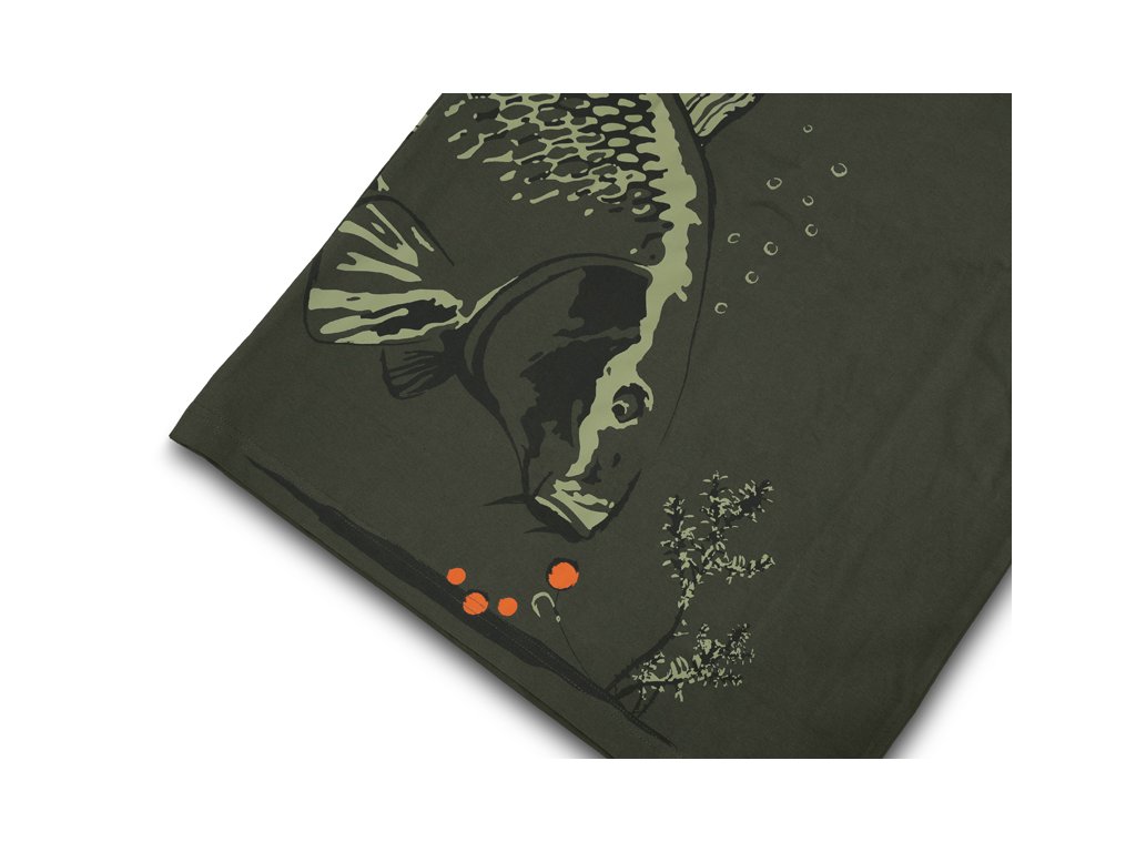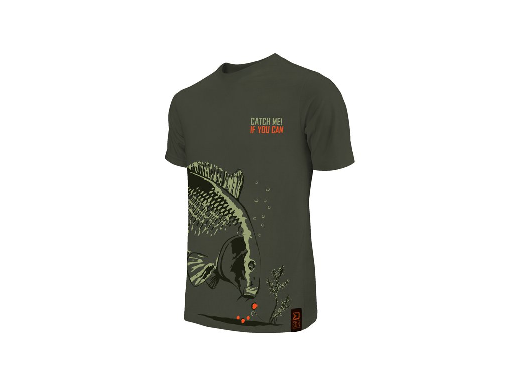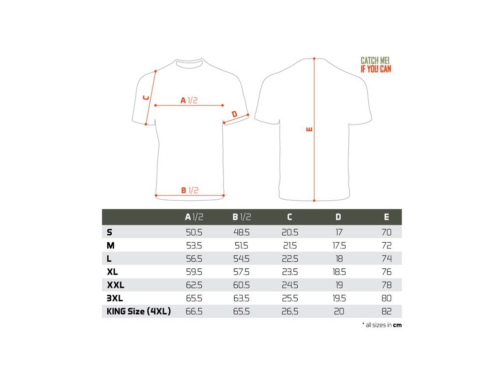 Druhá generace kaprařských triček Catch me s naším vlastním a kompletně obnoveným barevným designem. Série CATCH ME IF YOU CAN (chyť mě pokud to dokážeš) s vyobrazením kapra je nevšední kousek do vašeho, nejen kaprařského šatníku. Malba kapra přechází kolem dokola celého trupu v jeho spodní části. Kapr je zobrazen jako skica, či malba při zachování všech důležitých detailů. Ryba je zachycena v situaci, kdy se blíží k hrsti boilies, což je právě ten moment, na který všichni na břehu čekáme. Tričko je designováno do tmavě zelené barvy s efektní oranžovou a světle zelenou grafikou. Vybraná tkanina je vysoké kvality, stejně jako použitý barevný tisk. S oblečením CATCH ME IF YOU CAN budou všichni vědět s kým mají co dělat! Nabízíme je v široké škále velikostí, ze kterých si určitě vyberete. Technické parametry: Materiálové složení: 100% BavlnaDoplňkové parametry