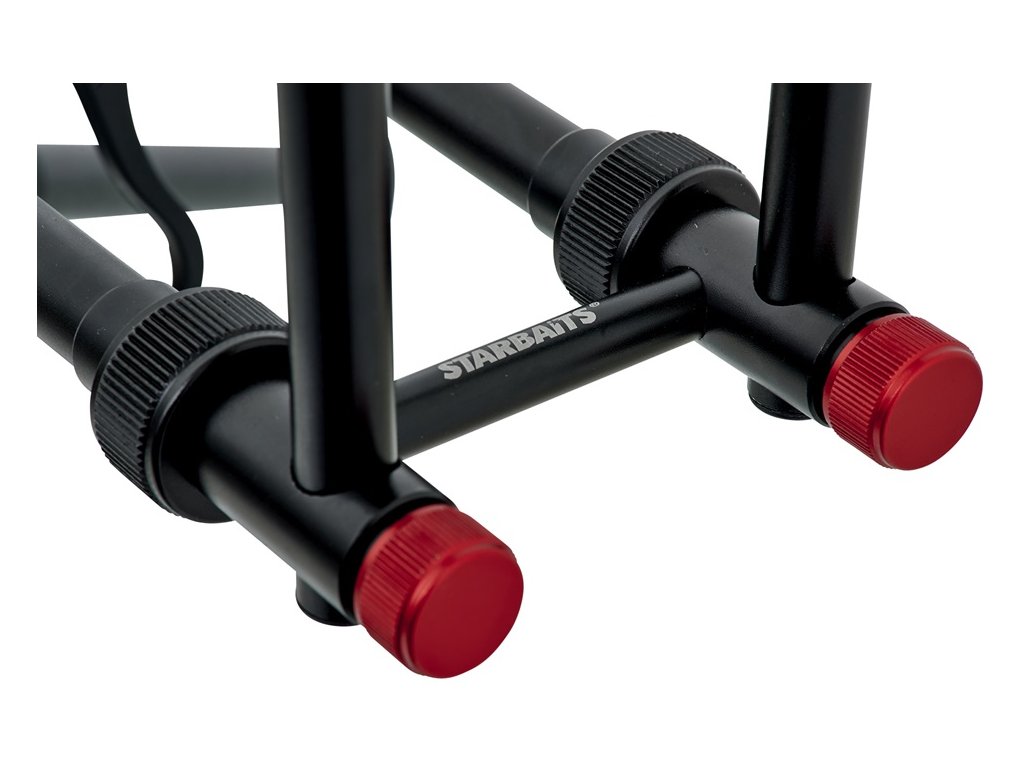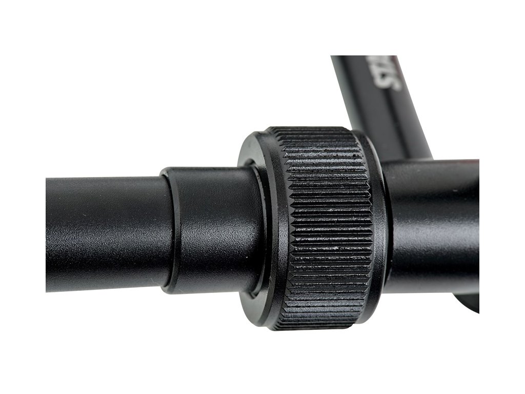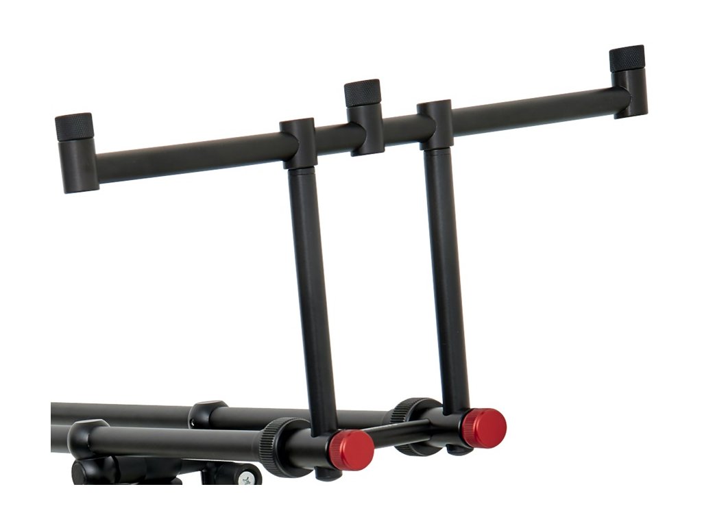 Stojan CHALLENGER POD je vybaven systémem otočným o 360° a třemi teleskopickými, nezávisle nastavitelnými nohami (vysoká/standardní nebo nízká pozice), díky čemuž se přizpůsobí všem podmínkám. Díky snadno nastavitelnému sklonu lze jednoduše přejít od pozice s pruty ve vodě do polohy se zvednutými špičkami, což oceníte například při podebírání velkých ryb. Odnímatelný hák umožňuje v případě špatného počasí zatížit stojan pro lepší stabilitu. Kvalitně zpracovaný stojan je dodáván ve verzi na 3 pruty a součástí balení je také transportní taška. Přepravní rozměry 78×23×7 cm, nastavitelná délka 70–110 cm, hmotnost 2400 g, šířka přední a zadní hrazdy 38 a 35 cm, délka nohou 40-60 cm.