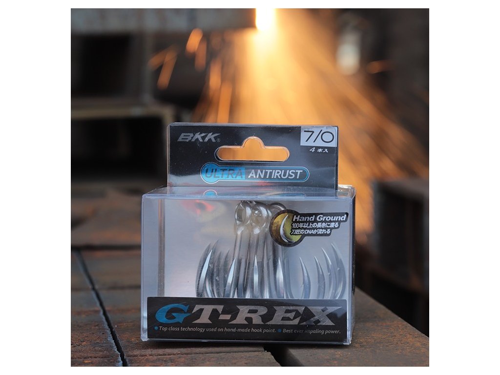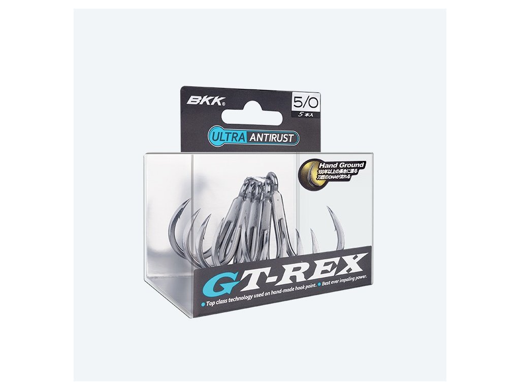 Trojháček BKK GT-REX byl původně vyvinut na chytání obrovských tuňáků a kranasů. Má Hand Ground hrot háčku a unikátní BKK potažení háčku Ultra-Antirust Coating, což zaručuje, že drží ostrost a výborně proniká do tlamy dravce. Všechny detaily GT-REX trojháčku od očka po hrot byly navrženy tak, že byl vytvořen nejlepší háček nejenom na popování v teplých mořích. GT-REX obdržel cenu Good Design Award 2019.Doplňkové parametry