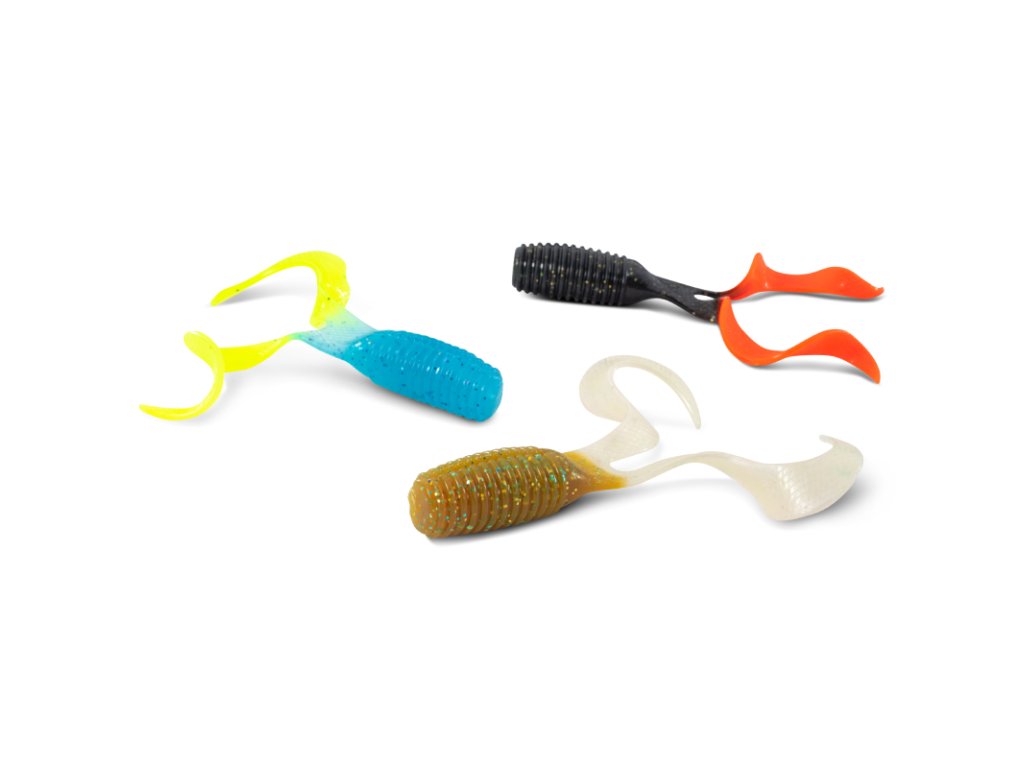 Velmi živý dvouocasý twister. Lze použít i jako imitaci krabů díky plovoucímu materiálu a ven směřujícím ocasům. Pracuje i při velmi pomalém vedení! Tuto nástrahu si zamilují štiky, candáti, sumci a okouni. Můžete nastražit klasicky na jigový háček nebo na offset. Délka v pohybu cca. 15 cm!
