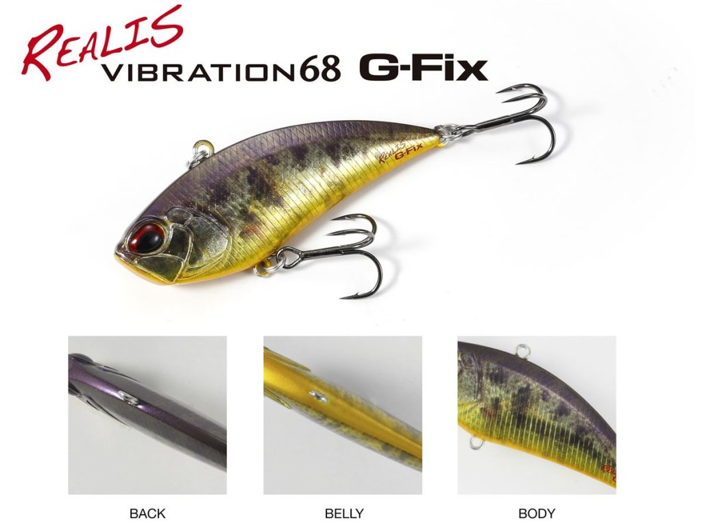 Jedinečnost a účinnost Vibrationu 68 G-Fix spočívá v jedinečných technických řešeních, které z něj dělají jeden z nejlepších lipless woblerů na světě. Patří k nejtenčím a zároveň nejtěžším lipless woblerům na trhu. Dokonalé vyvážení zvyšuje stabilitu wobleru při agresivním vedení a zabraňuje zamotání wobleru během náhozu.