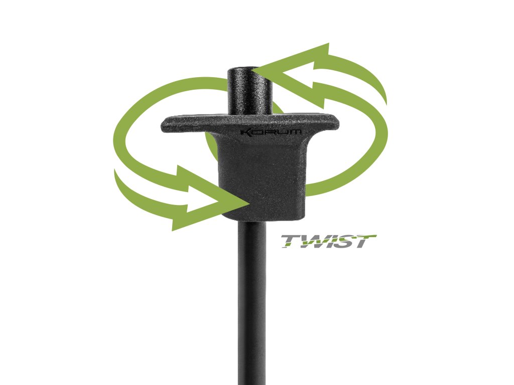 Teď už opravdu snadno zavrtáte svou vidličku do země! Naše vidličky Powertwist jsou dodávány s nástrojem pro vytvoření krouticího momentu, který vám zajistí, že zavrtáte vidličku téměř v každém terénu. Je také vybaven naším mechanismem Power Cam, který si bere inspiraci ze světa vysokohorské turistiky a poskytuje nejbezpečnější mechanismus Cam-Lock, jaký jsme kdy vyrobili. Nejenže se mimořádně snadno používá, ale také bezkonkurenčně bezpečně uzamkne výšku vaší vidličky. Je vyroben z lehkého, ale odolného hliníkového materiálu, má matně černou povrchovou úpravu a spínač Cam měkký na dotyk.