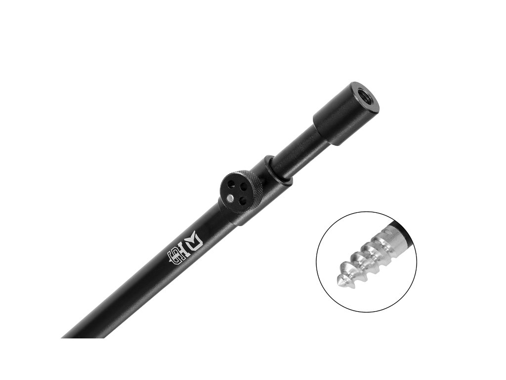 Vidlička TopSTIX je dokonalým spojením kvality, odolnosti a stylu v každém detailu. Je vyrobena z pevného hliníku s tlustými stěnami, díky čemuž poskytuje vynikající pevnost a stabilitu a vydrží tak i náročné podmínky při rybolovu. Masivní hrot se závitem na spodní straně umožňuje snadné a efektivní zavrtávání do tvrdé země, čímž zaručuje pevné ukotvení. Spolehlivý otočný mechanismus pro nastavení délky vám umožní přizpůsobit výšku vidličky podle aktuálních potřeb a terénních podmínek. Univerzální závit je kompatibilní se všemi běžně vyráběnými signalizátory nebo jiným rybářským příslušenstvím se stejným typem závitu. Elegantní černá barva dodává vidličce moderní vzhled, který se hodí k jakémukoli vybavení. S vidličkou TopSTIX získáte nejen funkční, ale i stylový produkt, který vám poskytne spolehlivost a stabilitu, ať už budete lovit na jakémkoli revíru.Doplňkové parametry