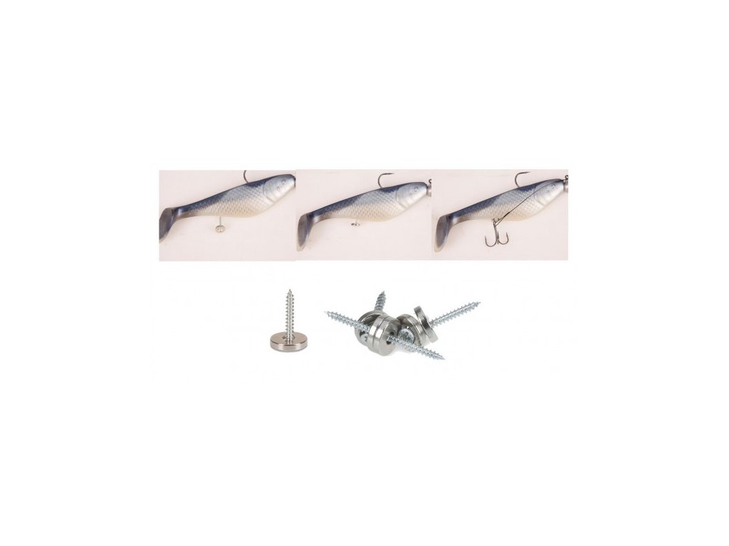 Inteligentní, magnetický držák pro upevnění trojháčku. Magnet se jednoduše našroubuje na požadované místo gumové nástrahy. To nám umožní, aby se trojháček udržel na místě, nepoškodil nástrahu a v okamžiku záběru se uvolní a ryba je zdolávána volně na lanku. V případě, že by se mohl Stinger např. v měkké gumě uvolnit, použijte pro zajištění vteřinové lepidlo.